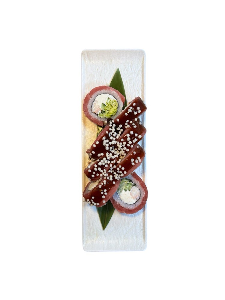Запечений з тунцем в ікрі, сакура, токі рол з креветкою, ф`южн