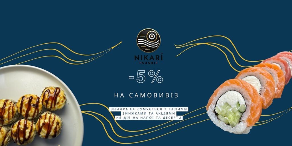 Рис, норі, крем сир, креветка, лосось, тунець, авокадо, соус нікамі, соус унагі, кляр, сухарі панко, кунжут ч/б, соус соєвий