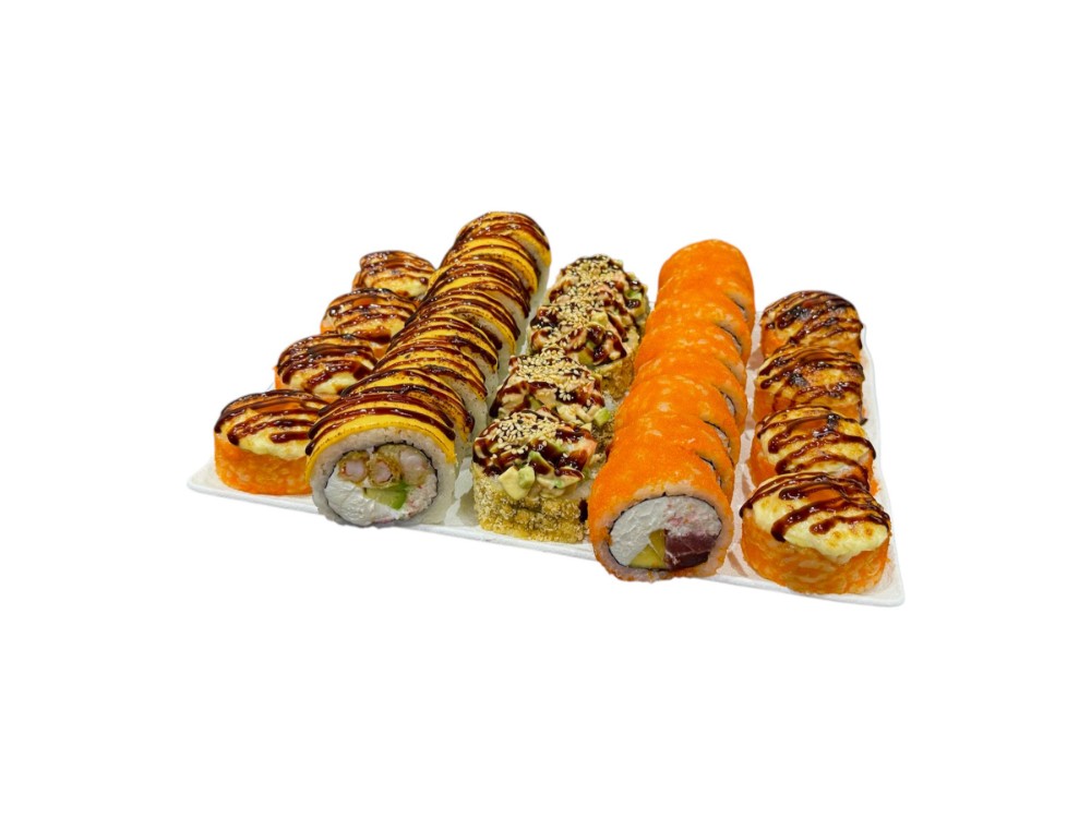 Червоний Дракон, Філадельфія з Тунцем, Філадельфія з Креветкою, Crispy Roll, Каліфорнія з Тунцем в кунжуті, Каліфорнія з Крабовим Міксом в кунжуті, Футомакі з Креветкою, Темпура рол з Креветкою